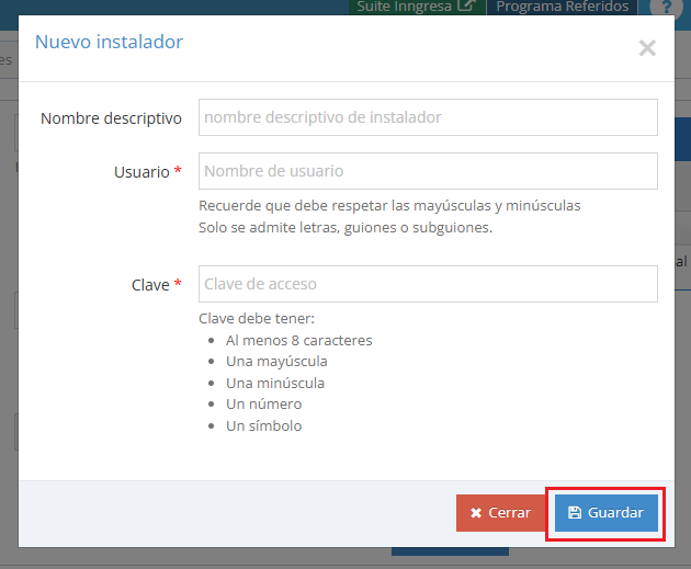 3. Finalmente, haga click en “Guardar” para confirmar la creación del usuario.