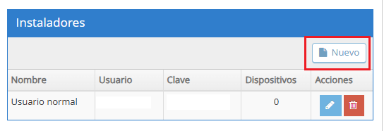 1. Ubique la tabla "Instaladores" y haga click en el botón "Nuevo".