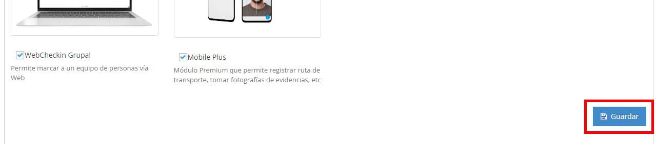 Una vez realizados los cambios en la configuración de Asistencia, haga click en el botón "Guardar" para confirmar la acción.
