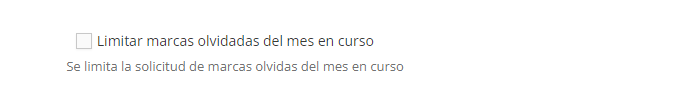 Además, podrá limitar la solicitud de marcas olvidas únicamente para el mes en curso, es decir, no podrán regularizar marcas olvidadas del mes anterior al actual.