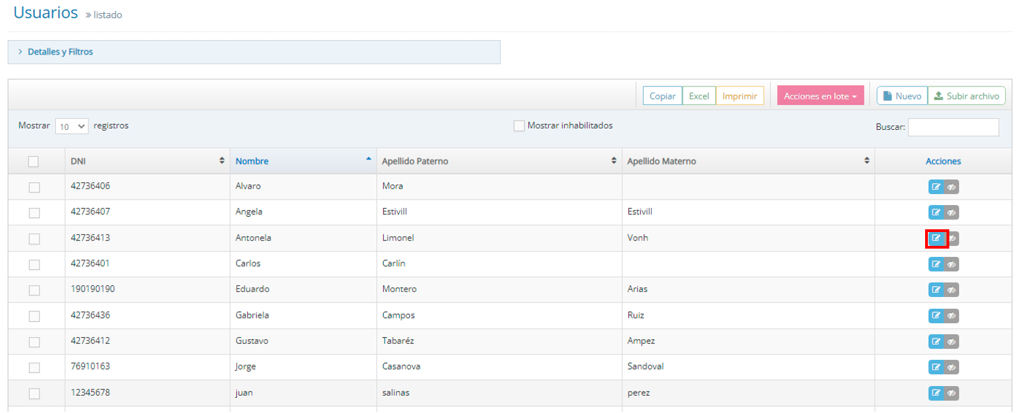2. Seleccione el usuario y haga click en el botón "Editar".