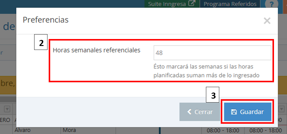2. Al hacer click, se abrirá una ventana modal en la que deberá establecer la referencia semanal..