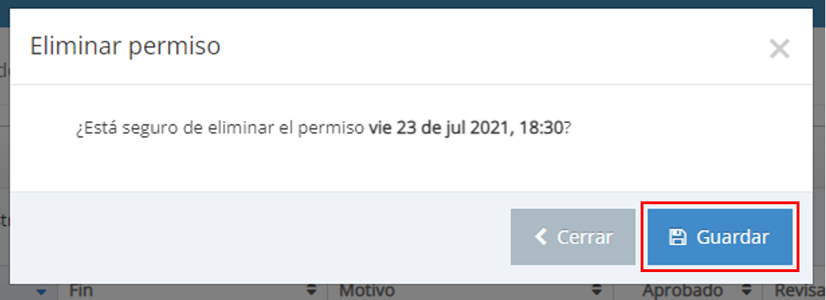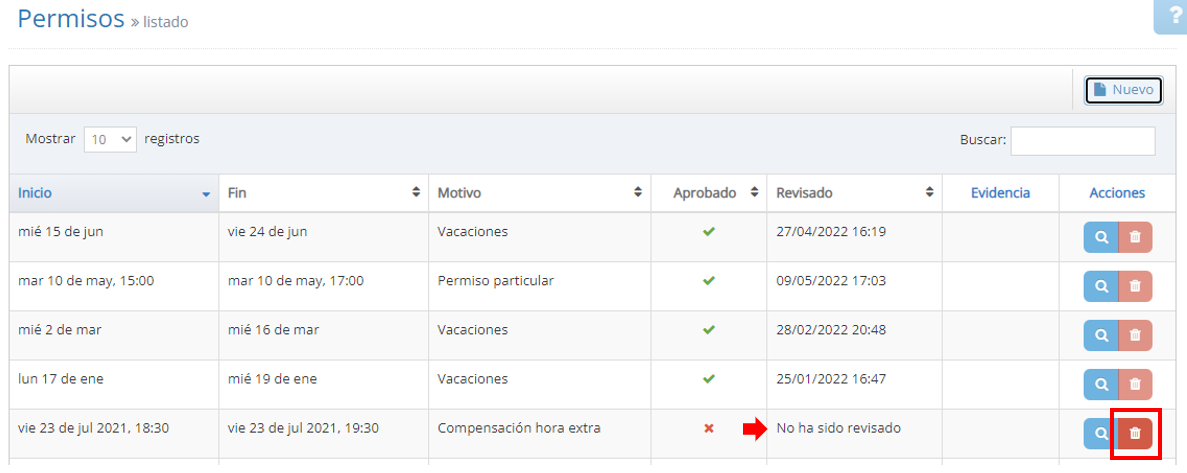 Solo se pueden eliminar aquellas solicitudes de permiso que aún no han sido revisadas desde el Portal Administrador.