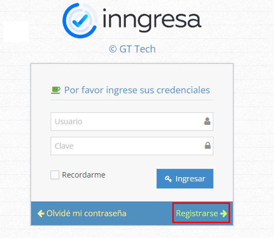2. Si es la primera vez que ingresa al sistema, haga click en el botón "Registrarse".