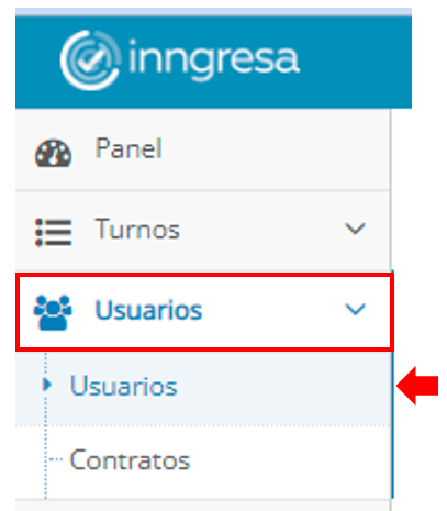 2. Ubicar el menú que se encuentra en el lado izquierdo, haga click a la opción "Usuarios" y luego a "Usuarios".