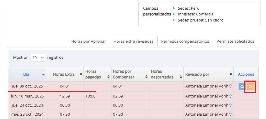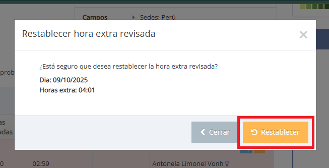 Al restablecer, podrá efectuar los cambios necesarios y permitir que el sistema vuelva a calcular el sobretiempo con la información actualizada.
