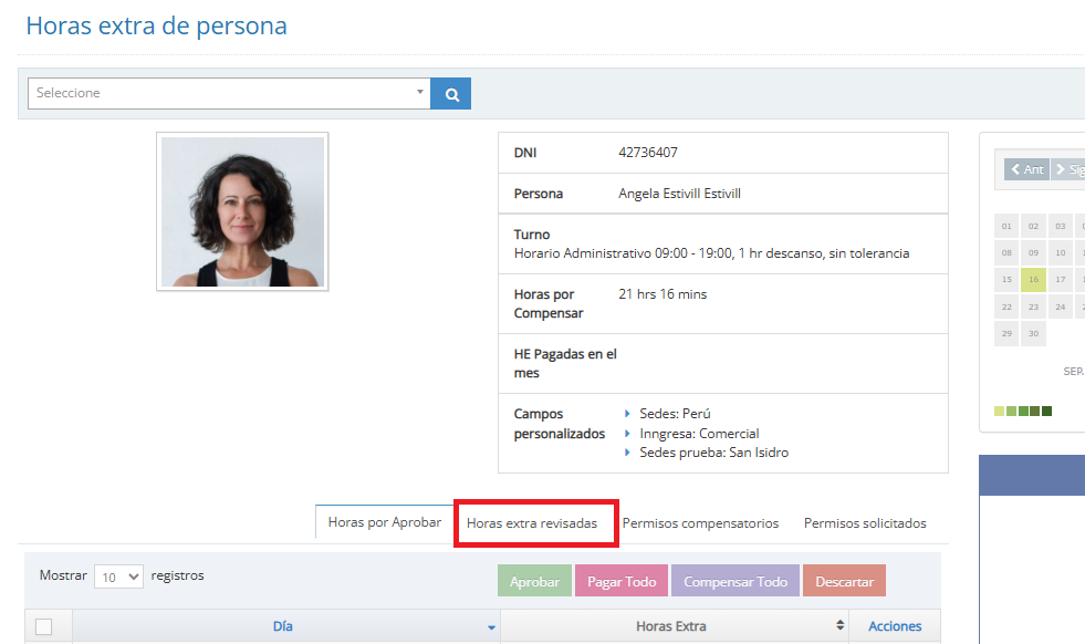 3. En la tabla que aparece, ubique la pestaña “Horas extra revisadas.”